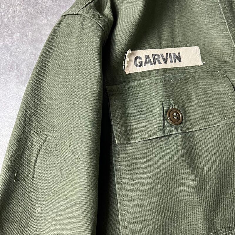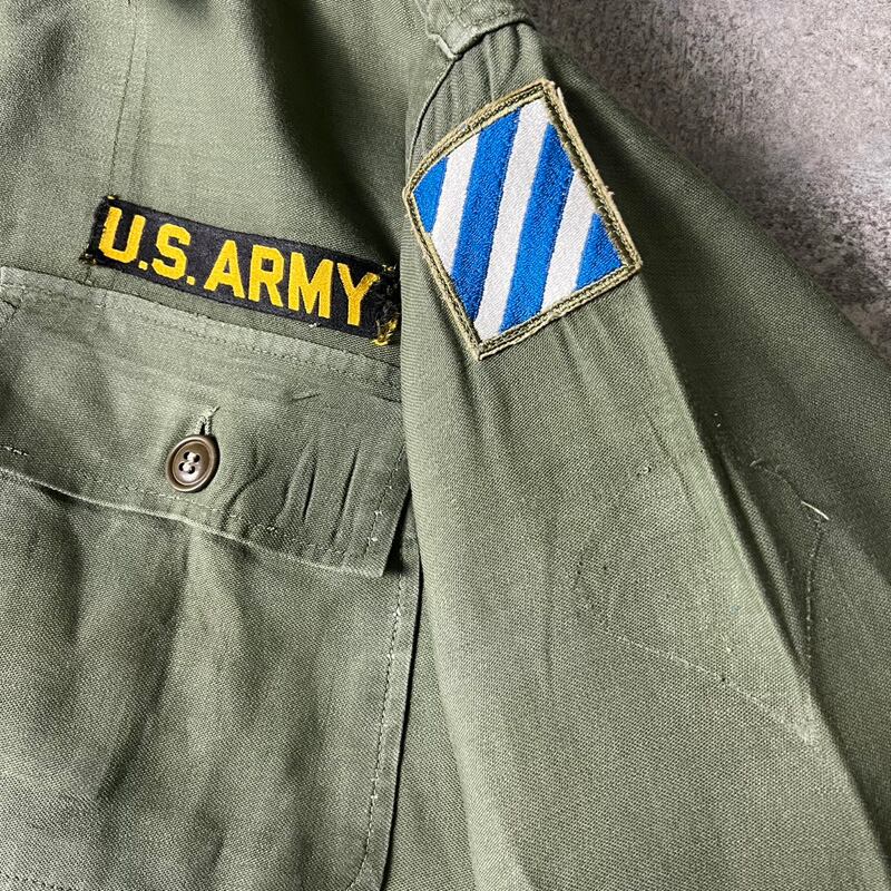 50s US ARMY 米軍実物 OG-107 コットン サテン ユーティリティ シャツ 1st 筒袖 初期 / 50年代 ビンテージ ミリタリー ジャケット