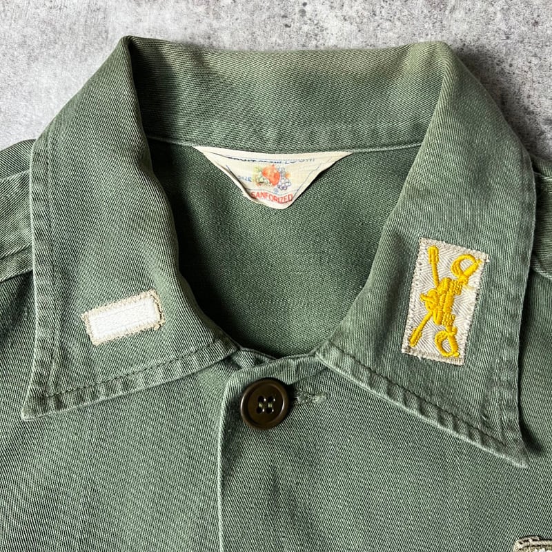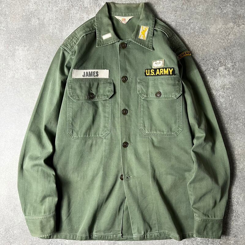 民間 60s FRUIT OF THE LOOM コットン サテン ユーティリティ シャツ / 60年代 ビンテージ ミリタリー ジャケット OG 107 ARMY アーミー