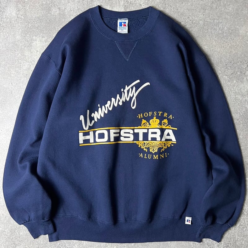 90s USA製 RUSSELL カレッジ プリント スウェット トレーナー XL / 90年代 アメリカ製 オールド ラッセル ネイビー