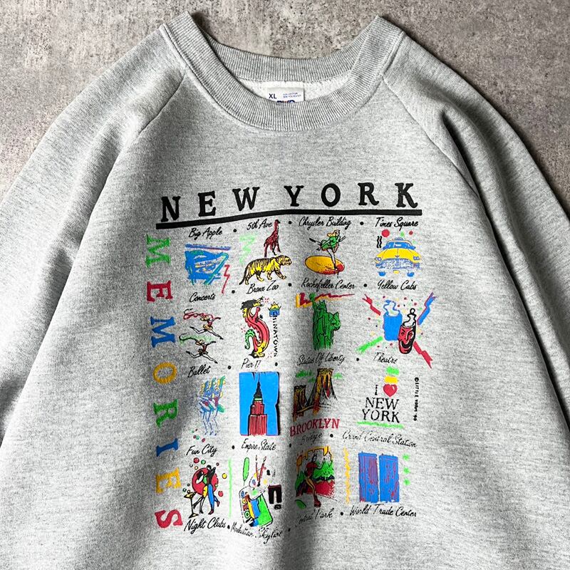 90s USA製 ニューヨーク アート スーベニア プリント スウェット トレーナー XL / 90年代 アメリカ製 オールド 霜降り グレー NY