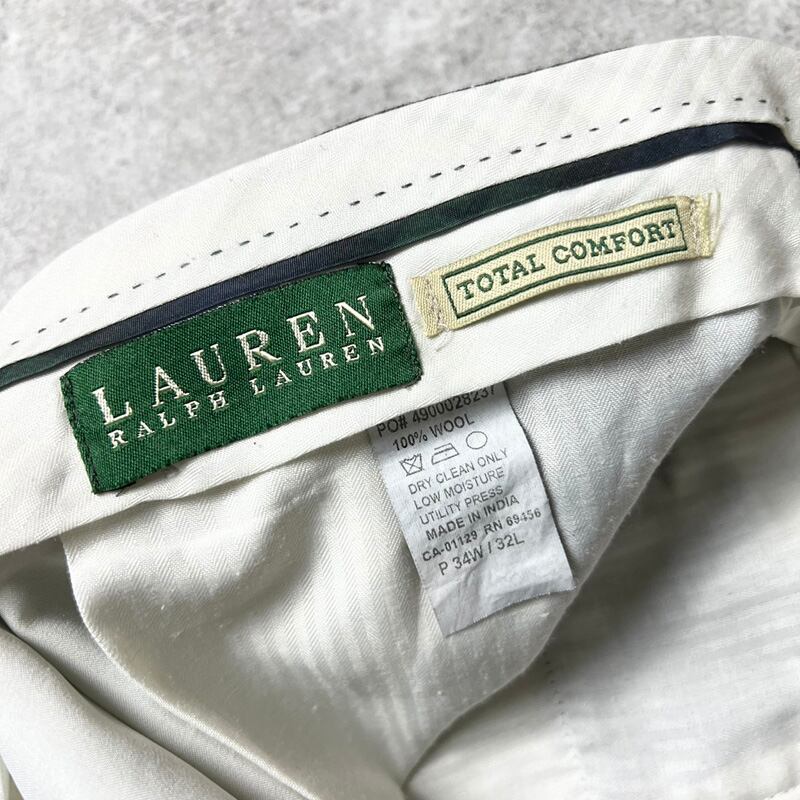 LAUREN RALPH LAUREN 2タック ウール スラックス パンツ 34 32 / POLO ポロ ラルフローレン ローレン ワイド ブラック 黒