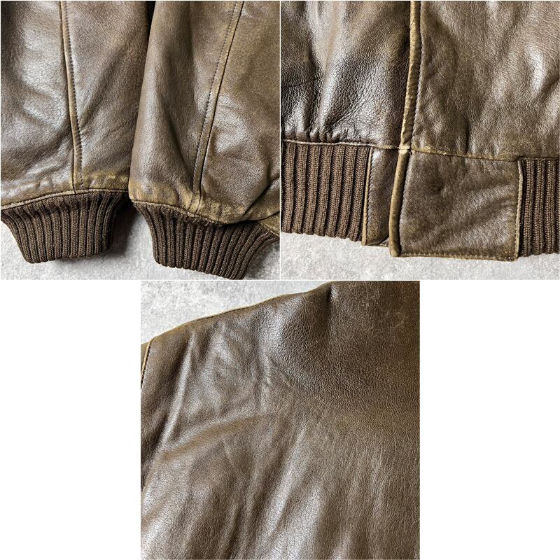 使用感。袖・裾などに本革特有のスレ。