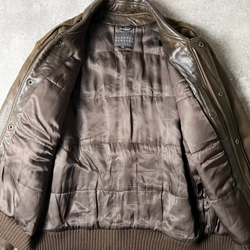 80s BARNEYS NEWYORK 中綿入り 本革 レザー ジャケット 38 / 80年代 香港製 ビンテージ バーニーズニューヨーク ブラウン ボンバー 革ジャン