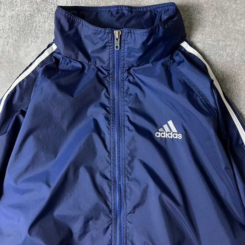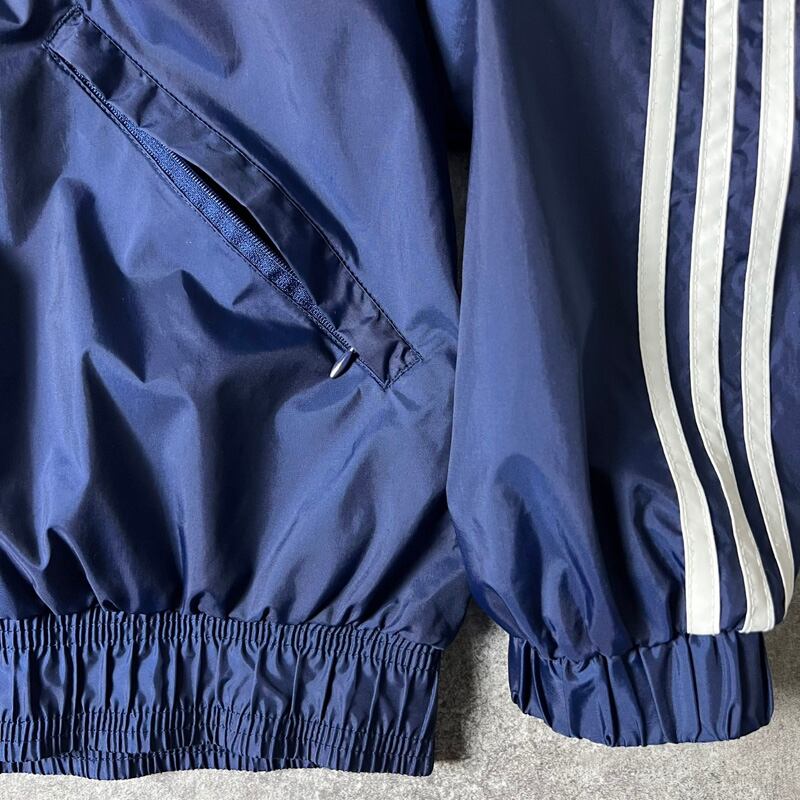 90s adidas 収納 フード付き フルジップ ナイロン ジャケット / 90年代 オールド アディダス パフォーマンス ロゴ 3ストライプ