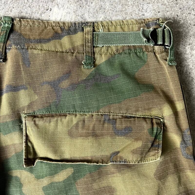 70s US ARMY 米軍実物 ERDL グリーンリーフ カモ ジャングルファティーグ カーゴ パンツ S-R / 70年代 ビンテージ ミリタリー 迷彩 迷彩柄