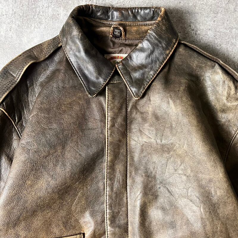 80s 旧タグ BANANA REPUBLIC A-2 タイプ 本革 レザー フライト ジャケット 44L / 80年代 ビンテージ バナナリパブリック 革ジャン ボンバー ブラウン