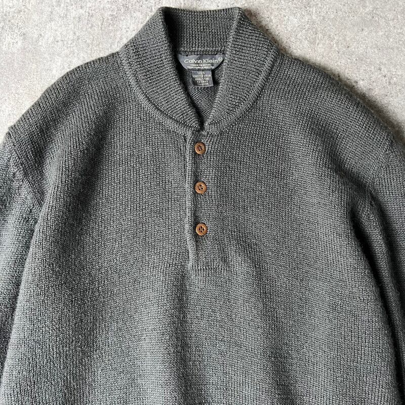 80s Calvin Klein ヘンリ—ネック ウール ニット セーター M / 80年代 カルバンクライン ビンテージ CK 無地
