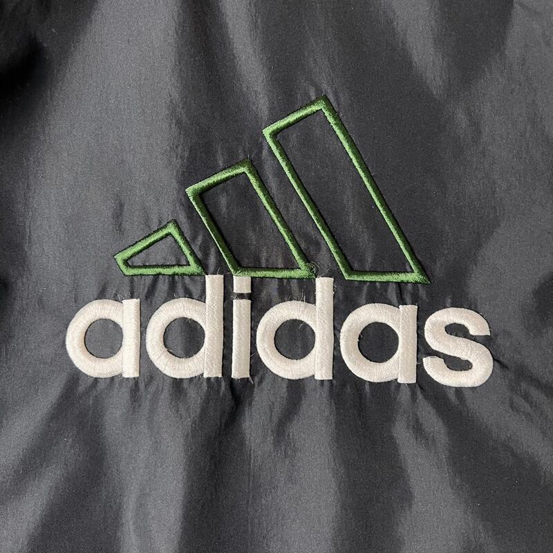 90s adidas ビッグ ロゴ 刺繍 フルジップ ナイロン ジャケット XL / 90年代 オールド アディダス パフォーマンス メッシュ ライナー 黒