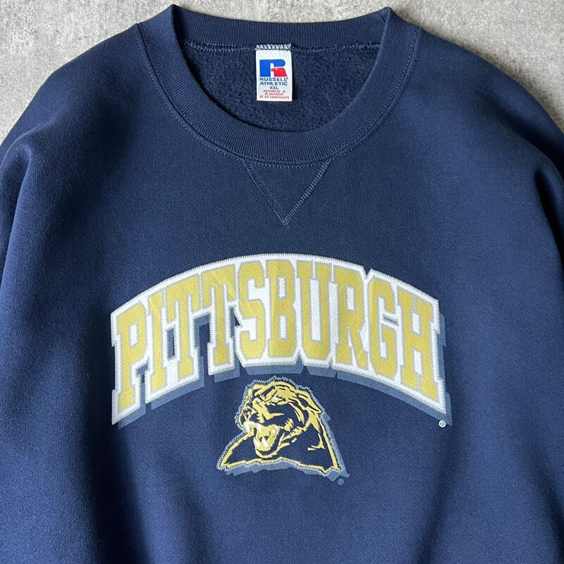 90s RUSSELL 2段 カレッジ プリント スウェット トレーナー XXL / 90年代 オールド ラッセル ネイビー 紺 スエット