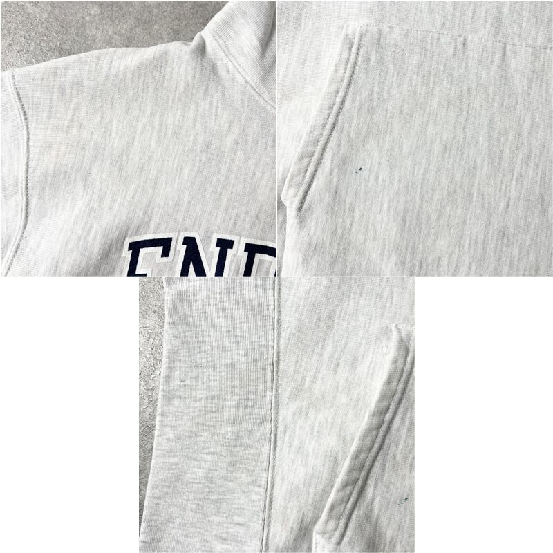 00s Champion 2段 カレッジ プリント オリジナル リバースウィーブ スウェット フード パーカー M / 00年代 オールド チャンピオン 霜降り グレー