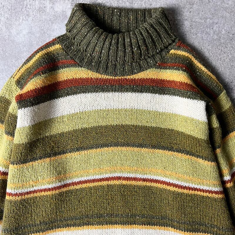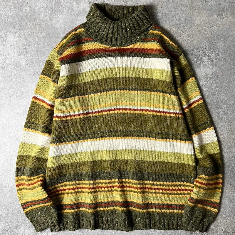 90s USA製 ST JOHN'S BAY マルチ ボーダー タートルネック アクリル ウール ニット セーター M / 90年代 オールド JCPenney JCペニー