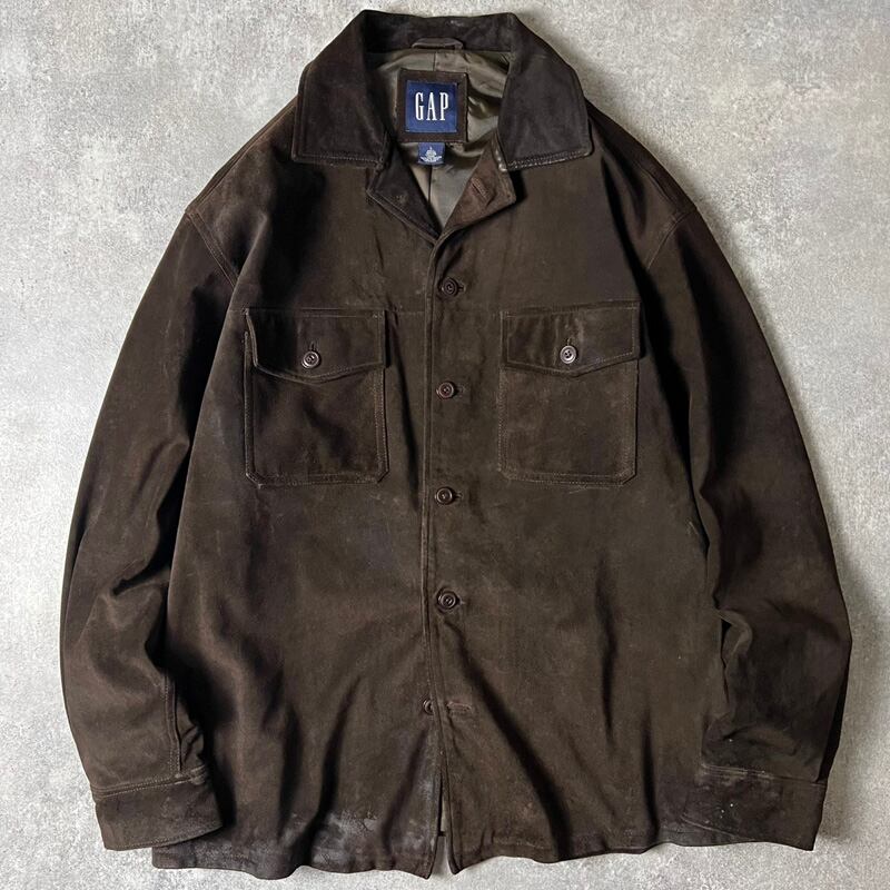 90s GAP サテン ライナー 本革 スエード レザー シャツ ジャケット L / 90年代 オールド ギャップ ブラウン ヌバック