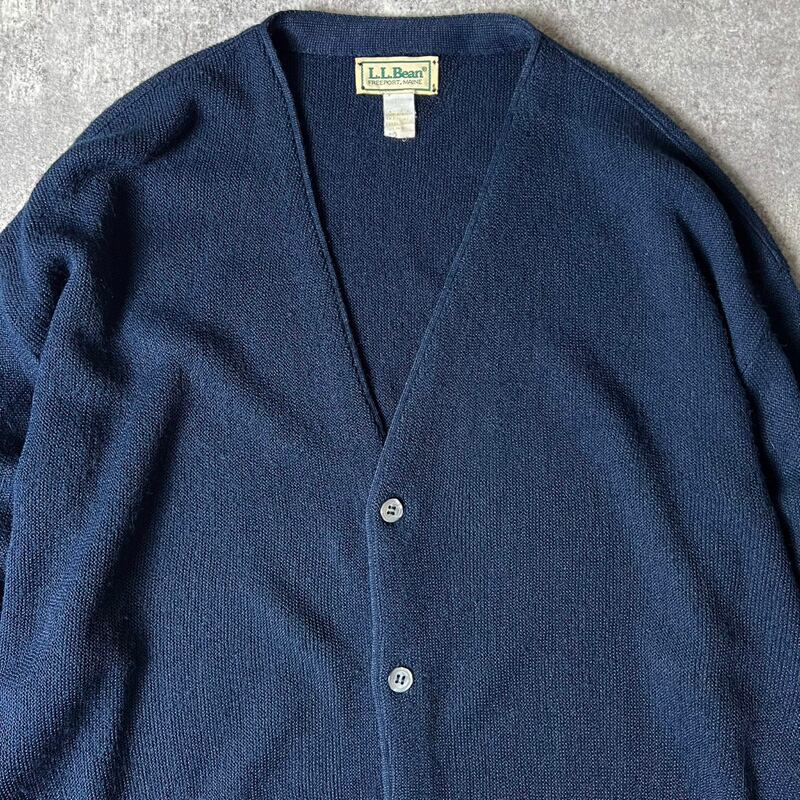 80s LLBean 無地 アクリル ニット カーディガン / 80年代 ビンテージ エルエルビーン LLビーン セーター ネイビー 紺 カーデ