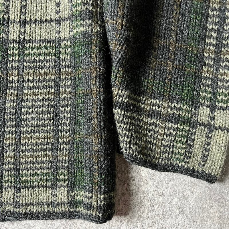 90s 巨人タグ J.CREW チェック ウール ニット セーター M / Jクルー 90年代 オールド クルーネック マルチカラー オリーブ