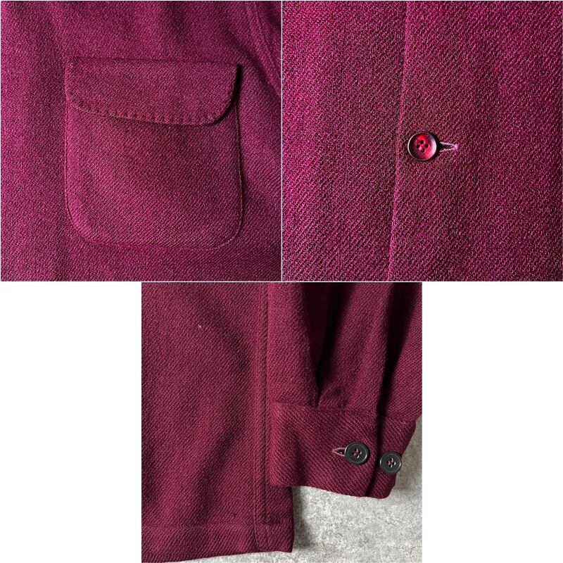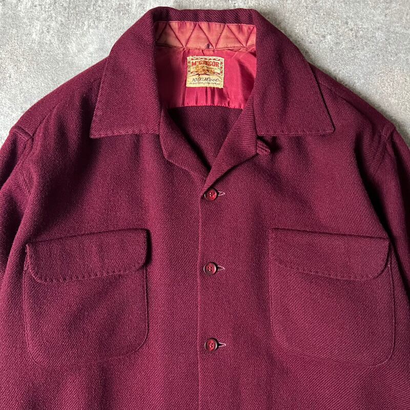 60s USA製 McGREGOR 無地 ウール 長袖 オープンカラー シャツ M / 60年代 アメリカ製 マクレガー ビンテージ 開襟 ボックス ワイン レッド