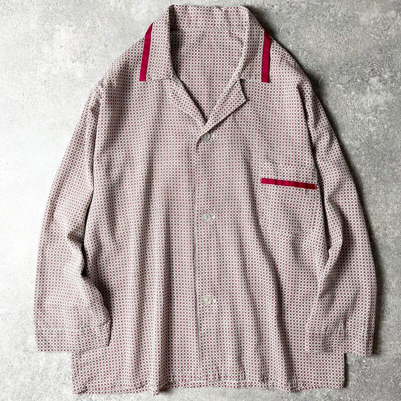 60s Unknown 幾何学 模様 総柄 長袖 パジャマ シャツ / 60年代 ビンテージ プリント 開襟 オープンカラー ボックス