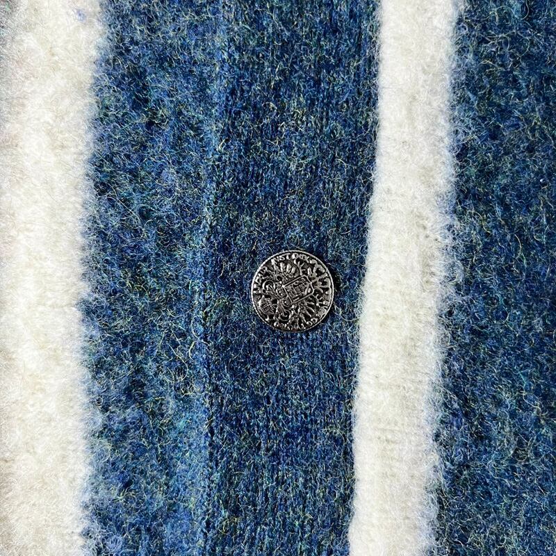 60s Harridge Row ストライプ ウール ニット カーディガン / 60年代 ビンテージ セーター ブルー モヘア マルチカラー