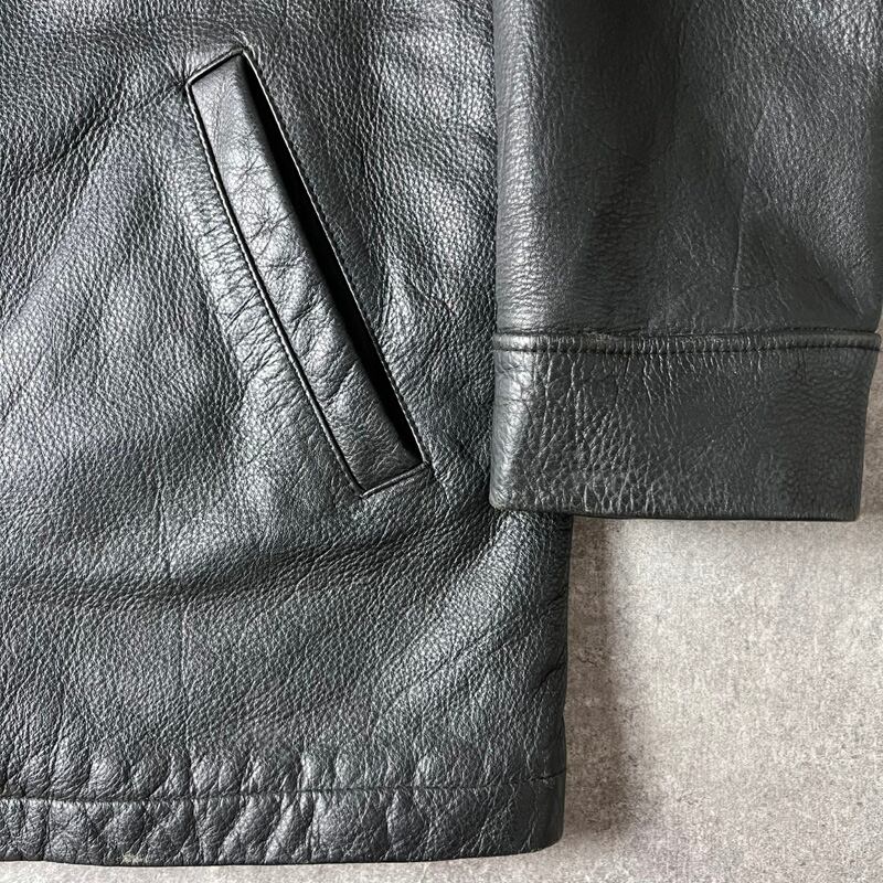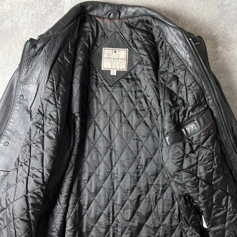 90s JOHN ASHFORD 中綿 ライナー フルジップ 本革 レザー カーコート M / 90年代 オールド ブラック 黒 ハーフコート 革ジャン
