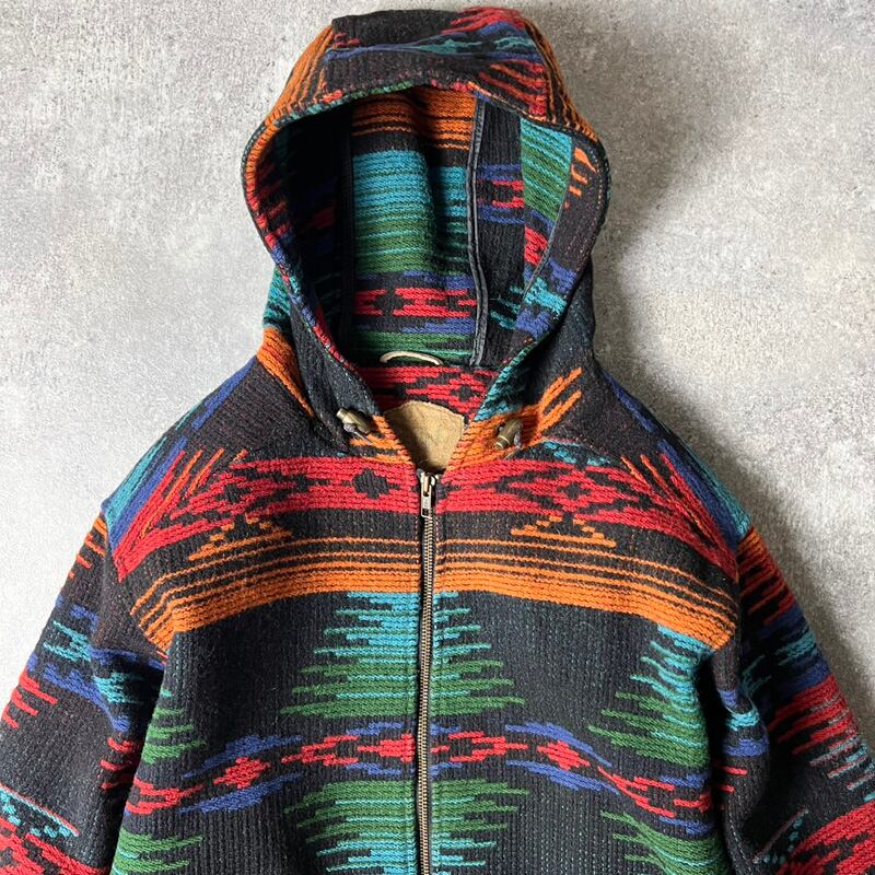90s USA製 Woolrich ライナー付き ネイティブ 総柄 ウール ブランケット パーカー ジャケット M / 90年代 アメリカ製 オールド ウールリッチ チマヨ