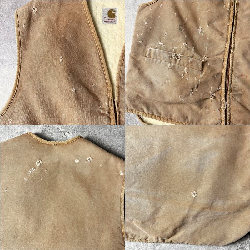 雰囲気系 70s USA製 Carhartt フルジップ ボア ライナー コットン ダック ベスト XL / 70年代 アメリカ製 ビンテージ カーハート パイル フリース