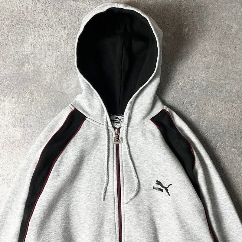 80s PUMA 2トーン 切替 フルジップ スウェット フード パーカー M / 80年代 ビンテージ プーマ トレーナー ワンポイント ロゴ