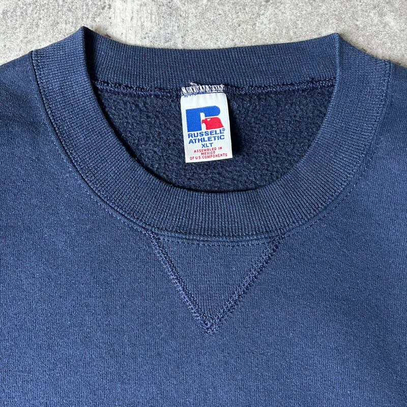 90s RUSSELL 無地 前V スウェット トレーナー XL / 90年代 オールド ラッセル 裏起毛 スエット ネイビー 紺