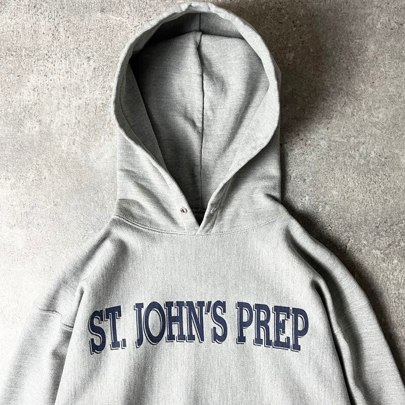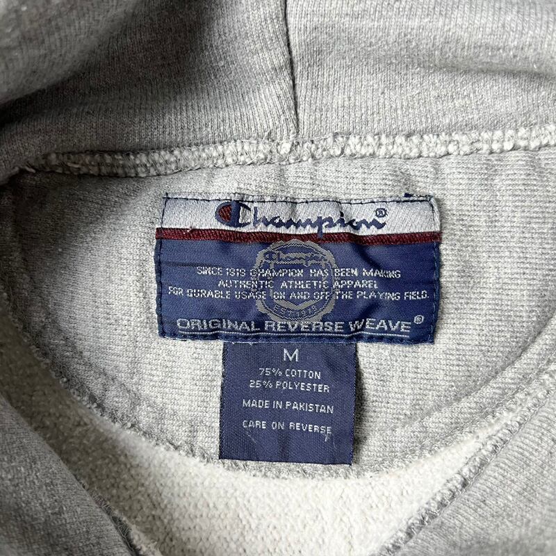00s Champion カレッジ プリント オリジナル リバースウィーブ スウェット フード パーカー M / 00年代 オールド チャンピオン グレー