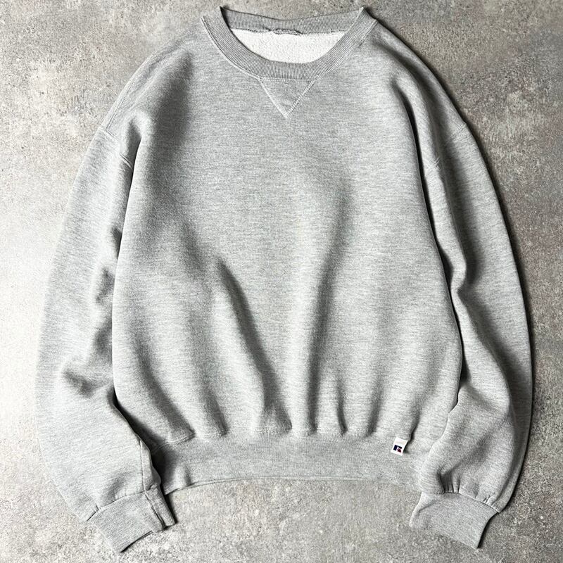 90s RUSSELL 無地 前V スウェット トレーナー / 90年代 オールド ラッセル 裏起毛 霜降り グレー スエット