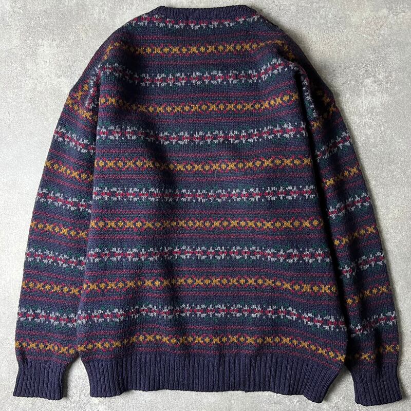 80s スコットランド製 LLBean フェアアイル 総柄 シェットランド ウール ニット セーター XL / 80年代 ビンテージ エルエルビーン LLビーン