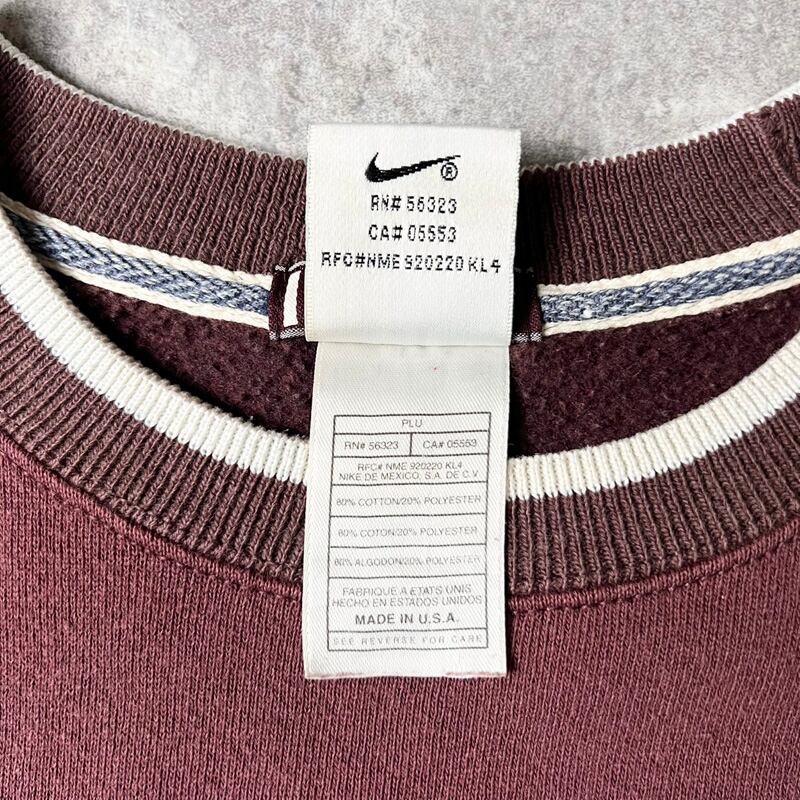 雰囲気系 90s USA製 NIKE ビッグ スウォッシュ ロゴ 刺繍 スウェット トレーナー XL / 90年代 アメリカ製 オールド ナイキ リブライン