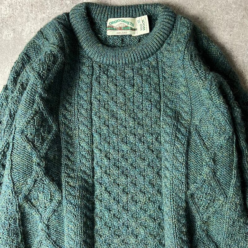 アイルランド製 aran crafts ウール フィッシャーマン ニット セーター XL / アランクラフト アラン グリーン 無地