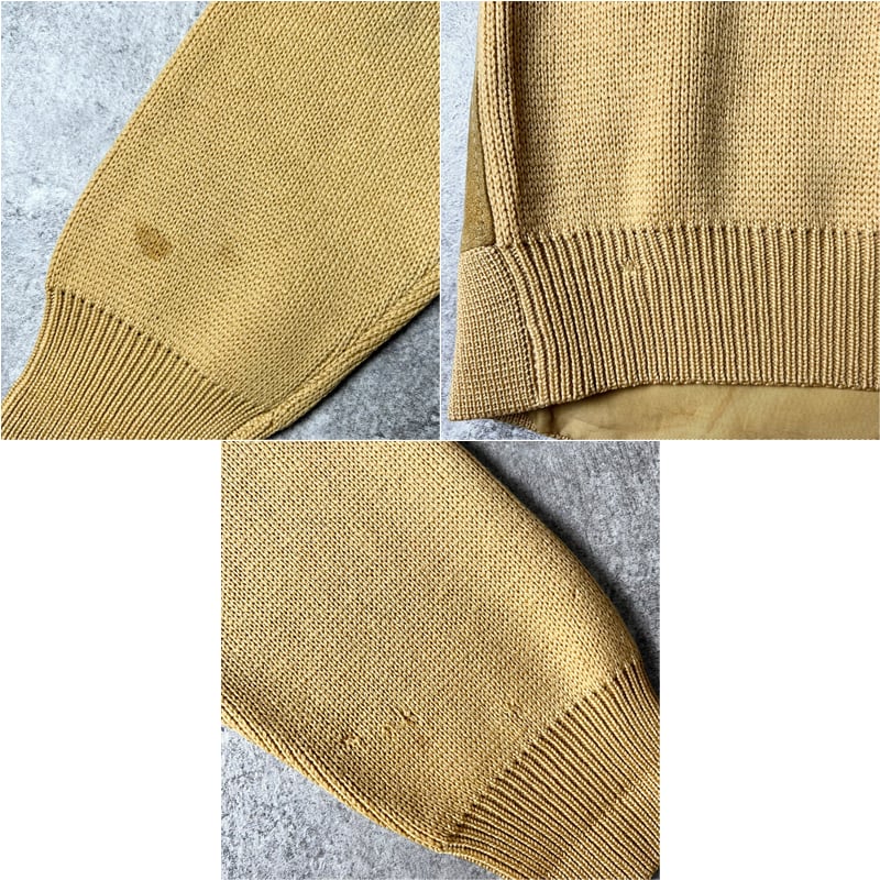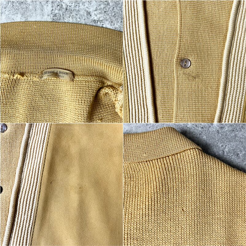 60s MERRILLSHARPE スエード 切替 襟付き オープンカラー ウール ニット カーディガン L / 60年代 ビンテージ セーター