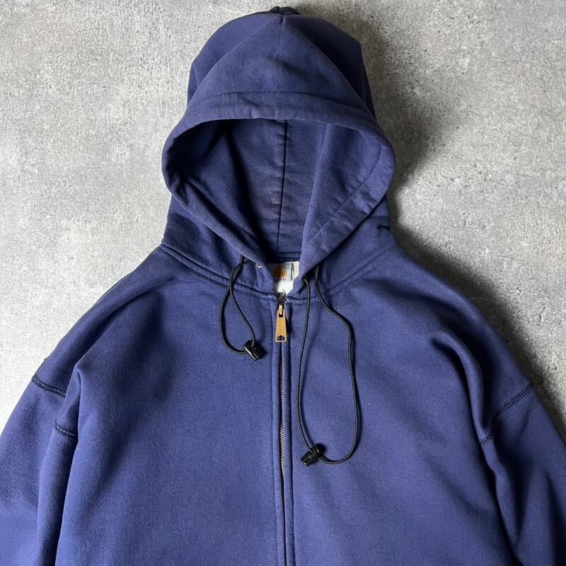 雰囲気系 90s Carhartt サーマル ライナー付き フルジップ スウェット フード パーカー / 90年代 オールド カーハート トレーナー スエット ナス紺