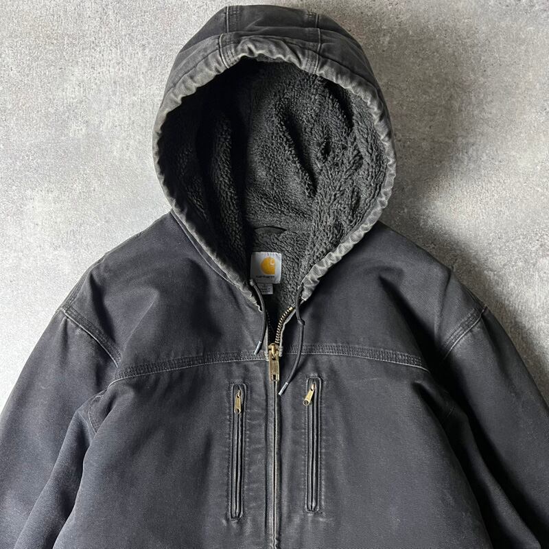 Carhartt ボア ライナー ダック パーカー ジャケット L / カーハート ブラック 黒 ジャンパー パイル フード 裏ボア