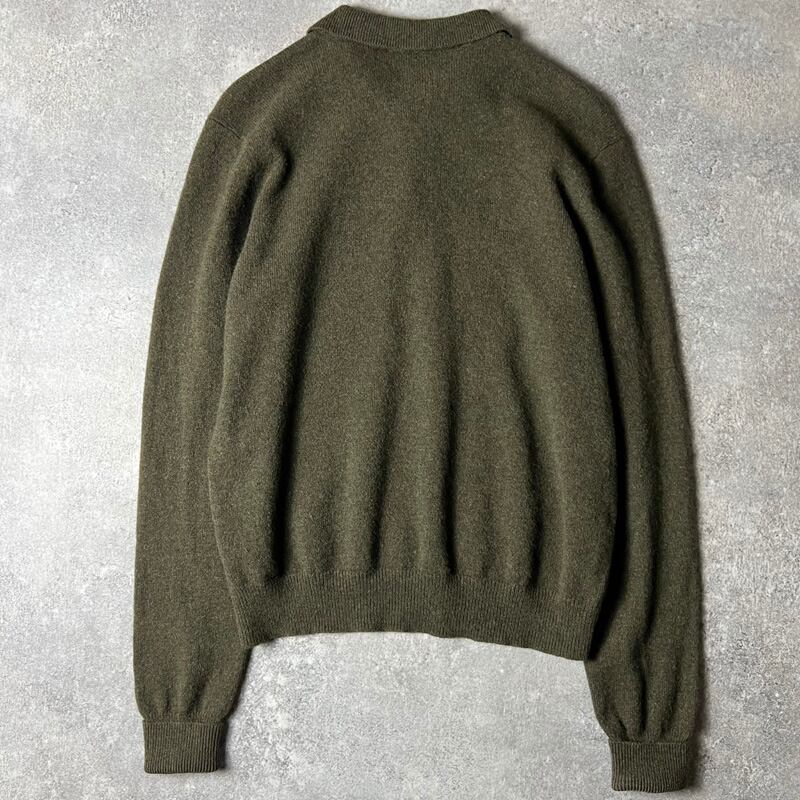 90s POLO RALPH LAUREN ラムウール ニット ポロシャツ XL / 90年代 オールド ポロ ラルフローレン ポニー刺繍 オリーブ セーター