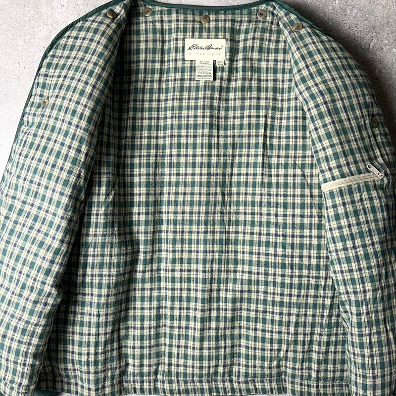 90s 白タグ Eddie Bauer グース ダウン キルティング ライナー ジャケット L / 90年代 オールド エディーバウアー グリーン ナイロン