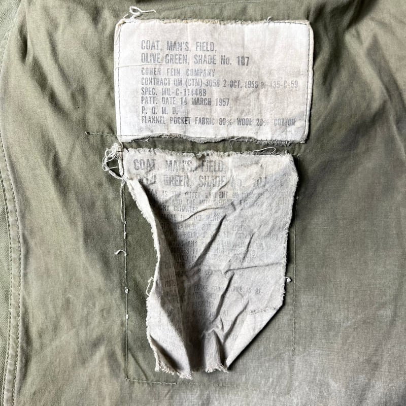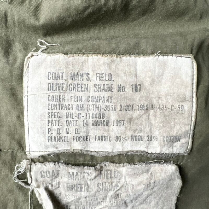 正式名称:COAT MAN'S, FIELD, OLIVE GREEN, SHADE No.107