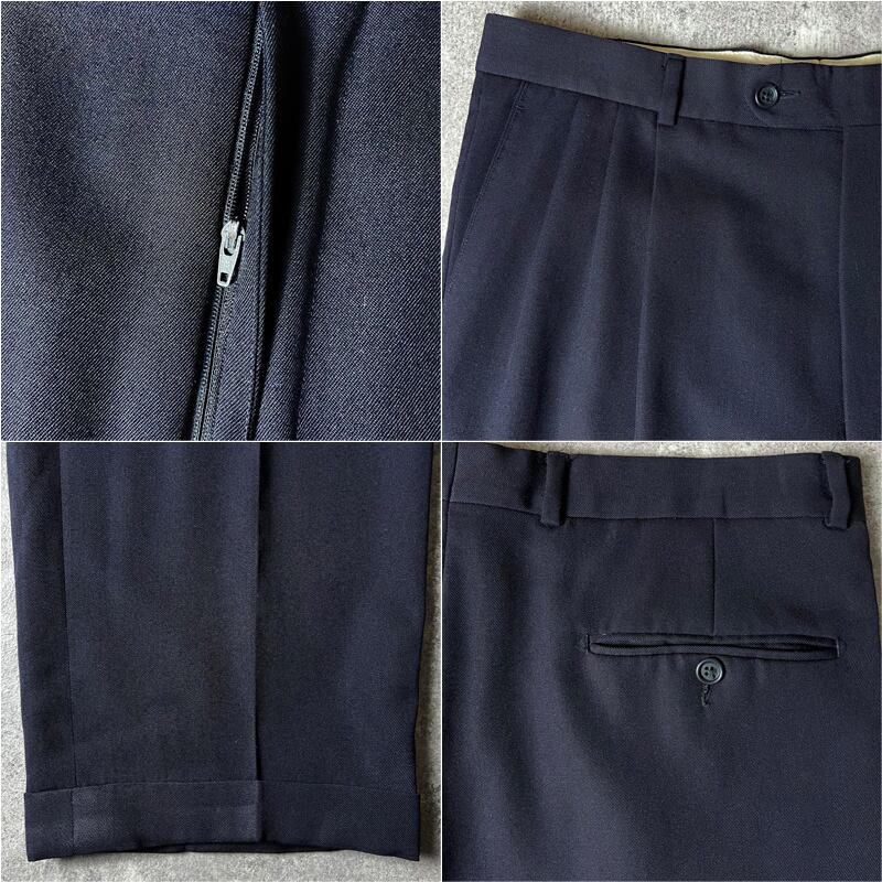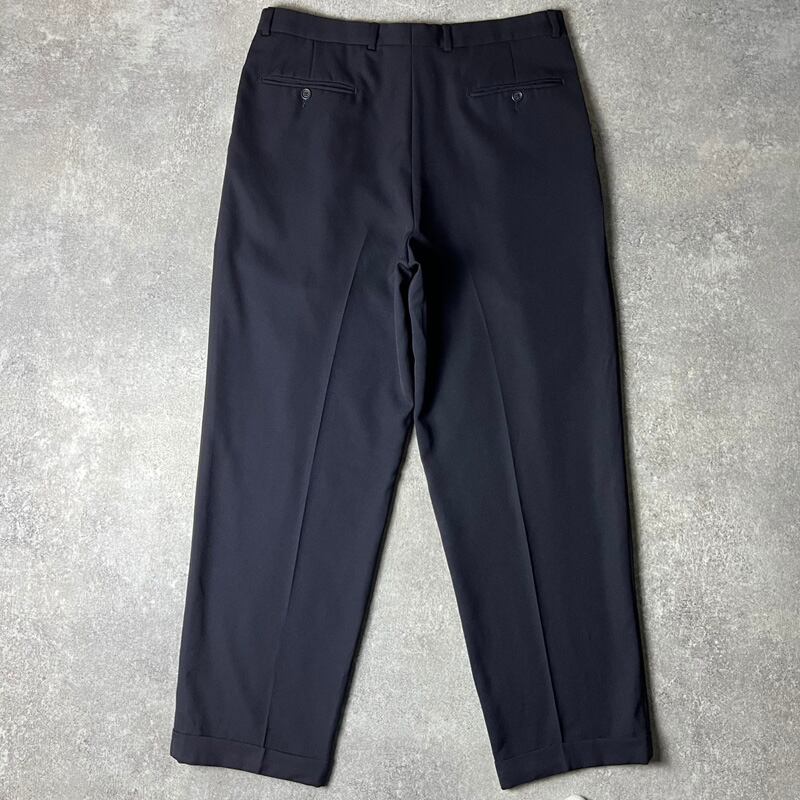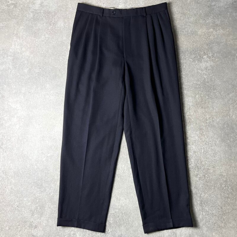 90s PAUL DIONE 3タック ウール ギャバジン スラックス パンツ 36 / 90年代 カナダ製 ネイビー 紺 無地 ワイド トラウザー