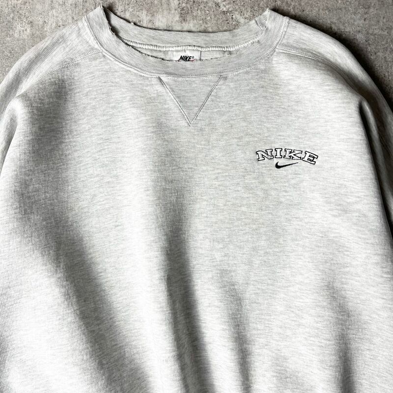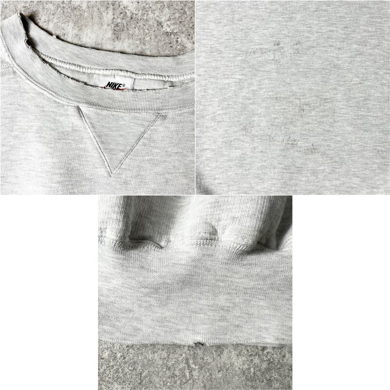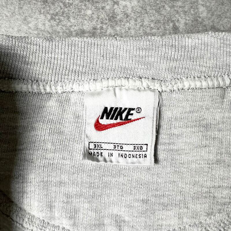 90s NIKE ワンポイント スウォッシュ ロゴ 刺繍 RWタイプ 前V スウェット トレーナー 3XL / 90年代 ナイキ スウッシュ リバース グレー