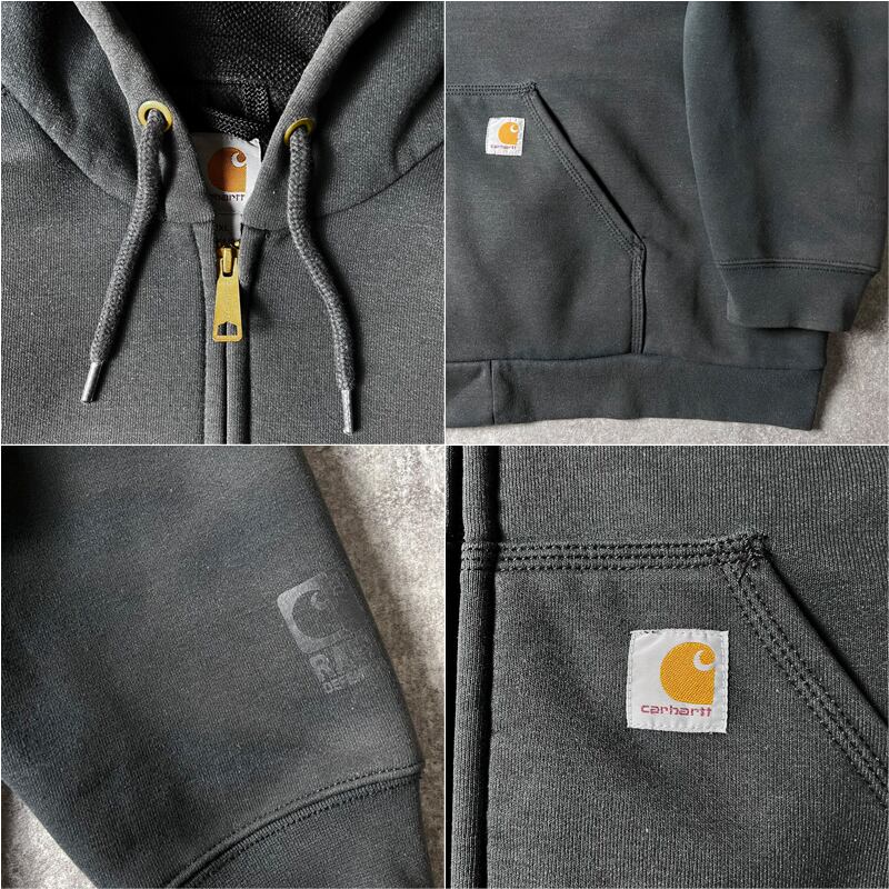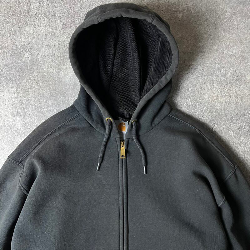 雰囲気系 Carhartt サーマル ライナー付き フルジップ スウェット フード パーカー 2XL / カーハート トレーナー RAIN DEFENDER 墨黒