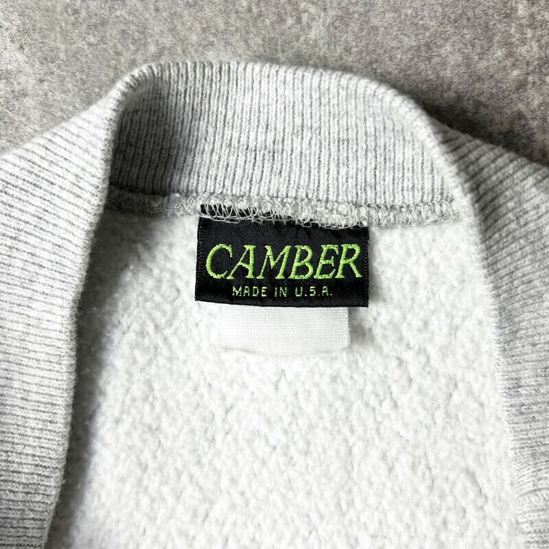 90s USA製 CAMBER 4段 カレッジ プリント RWタイプ スウェット トレーナー / 90年代 アメリカ製 リバース トレーナー 霜降り グレー キャンバー
