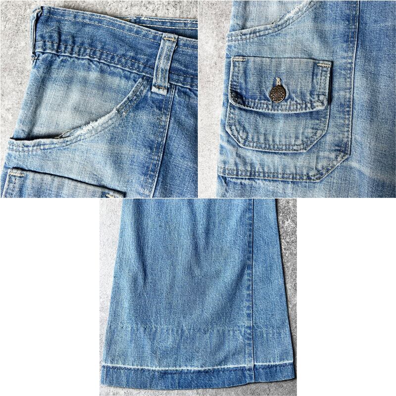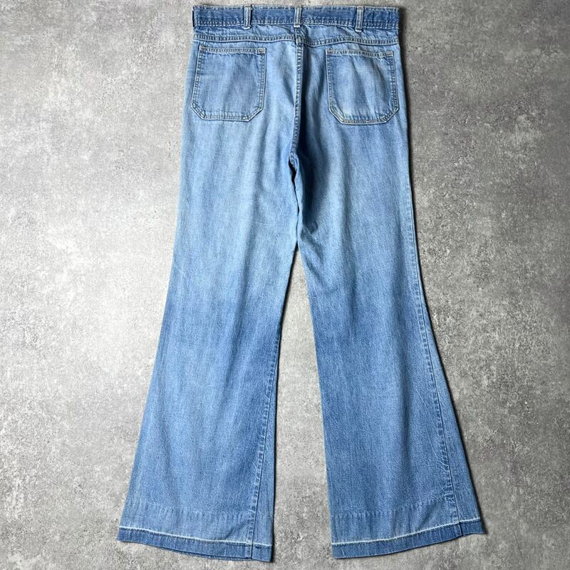 70s Unknown ベルボトム コットン デニム ブッシュ パンツ 35 31 / 70年代 ビンテージ TALON タロン ブーツカット フレア ストア