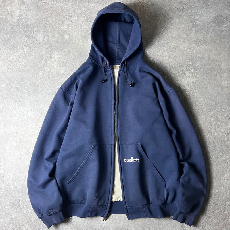 雰囲気系 90s Carhartt サーマル ライナー付き フルジップ スウェット フード パーカー XL / 90年代 オールド カーハート トレーナー スエット ナス紺