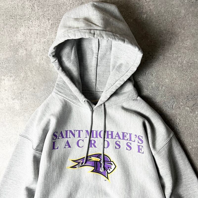 00s Champion 3段 カレッジ プリント プレミアム リバースウィーブ スウェット フード パーカー M / 00年代 チャンピオン トレーナー グレー