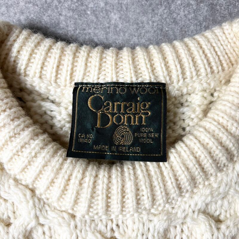 アイルランド製 Carraig Donn メリノ ウール フィッシャーマン ニット セーター XL / アラン ナチュラル 生成り 無地 アランセーター