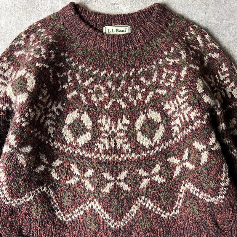 90s LLBean ノルディック 総柄 ウール ニット セーター / 90年代 オールド エルエルビーン LLビーン ラウンドヨーク フェアアイル
