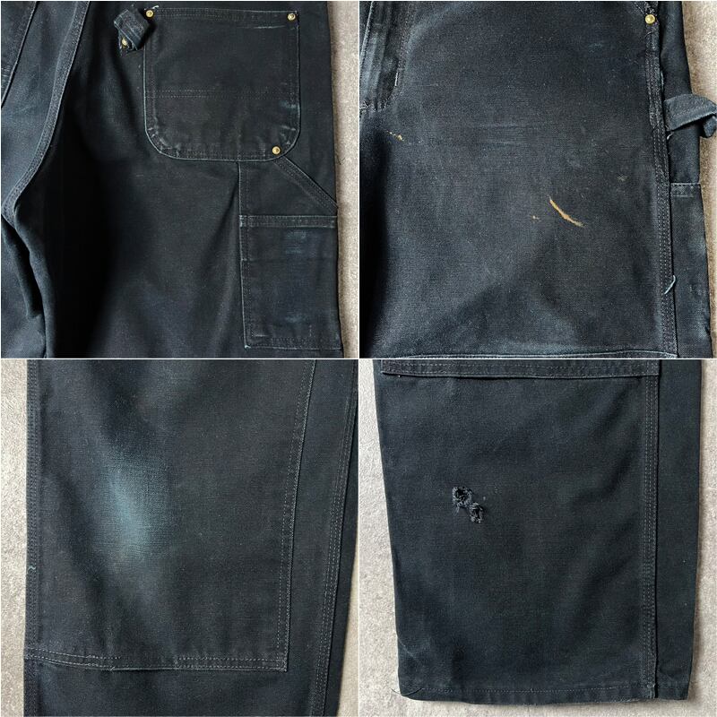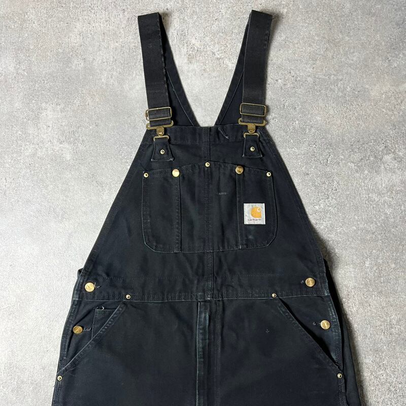 90s USA製 Carhartt ダブルニー ダック オーバーオール パンツ 36 32 / 90年代 アメリカ製 オールド カーハート ペインター ツナギ ブラック