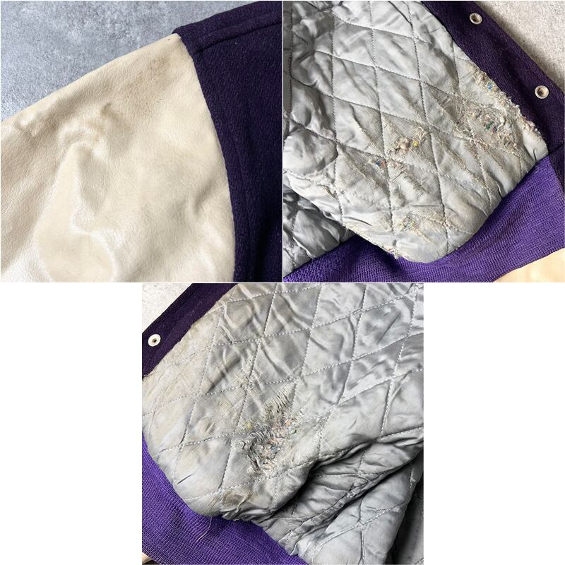 60s ALADEN レザー 切替 サガラ ワッペン ウール スタジアム ジャンパー L / 60年代 ビンテージ スタジャン ジャケット 中綿 アワード