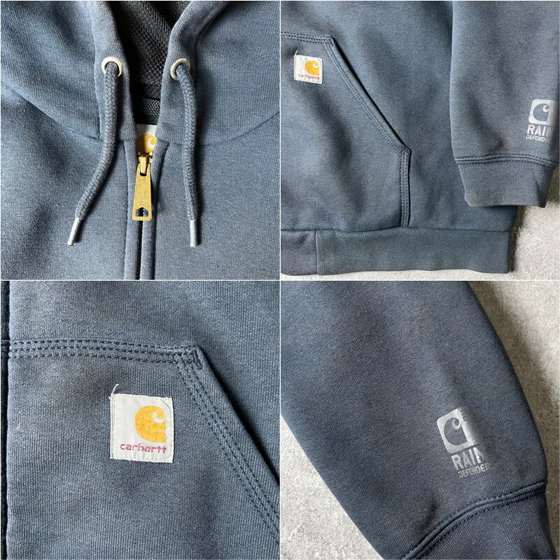 雰囲気系 Carhartt サーマル ライナー付き フルジップ スウェット フード パーカー XL / カーハート トレーナー RAIN DEFENDER ネイビー グレー