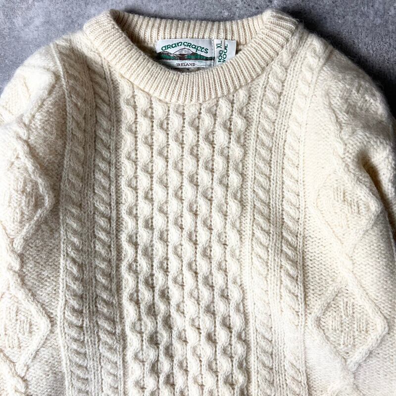 アイルランド製 aran crafts ウール フィッシャーマン ニット セーター XL / アランクラフト アラン ナチュラル 生成り 無地